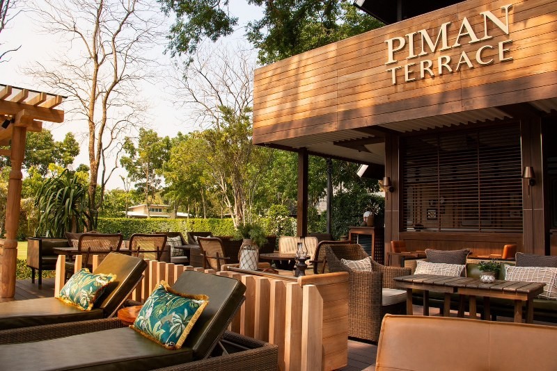 Piman Terrace พิมาน เทอร์เรส บาร์หรู บรรยากาศอบอุ่น ท่ามกลางธรรมชาติเขาใหญ่ ตั้งอยู่ภายใน Rancho Charnvee Resort Khaoyai & Country Club ภายในร้านถูกออกแบบให้อยู่ภายใต้ร่มไม้ของต้นพิมาน มีโต๊ะ เก้าอี้ ของตกแต่งต่างๆ เน้นใช้วัสดุไม้โทนสีน้ำตาล ซึ่งตัดกับสีเขียวของต้นไม้ ทุ่งหญ้า บริเวณร้าน ให้ความรู้สึกผ่อนคลายสบายใจ เหมาะสำหรับการพักผ่อนปล่อยกายพักใจใช้เวลากับคนพิเศษหรือเเก๊งค์เพื่อนในทริปท่องเที่ยวเป็นอย่างมาก สำหรับเมนูบริการอาหารหลากหลายสไตล์ ไม่ว่าจะเป็นสเต๊ก พิซซ่า พาสต้า สลัด และมีเมนูเครื่องดื่มหลายอย่างให้เลือกตามใจชอบ อีกทั้งยังมีดนตรีสดคอยขับกล่อมให้เพลิดเพลินไปกับบรรยากาศตลอดทั้งคืน นอกจากนี้ยังมีมุมถ่ายรูปสวยๆมากมาย ในช่วงเย็นจะมองเห็นแสงไฟที่ประดับประดาอยู่บนต้นพิมานอย่างสวยงาม ให้ความรู้สึกโรแมนติก ฟีลกู๊ด ดีต่อใจสุดๆ เรียกว่า เป็นร้านนั่งชิลเขาใหญ่-โคราช ที่น่ามาเช็คอินเป็นที่สุด