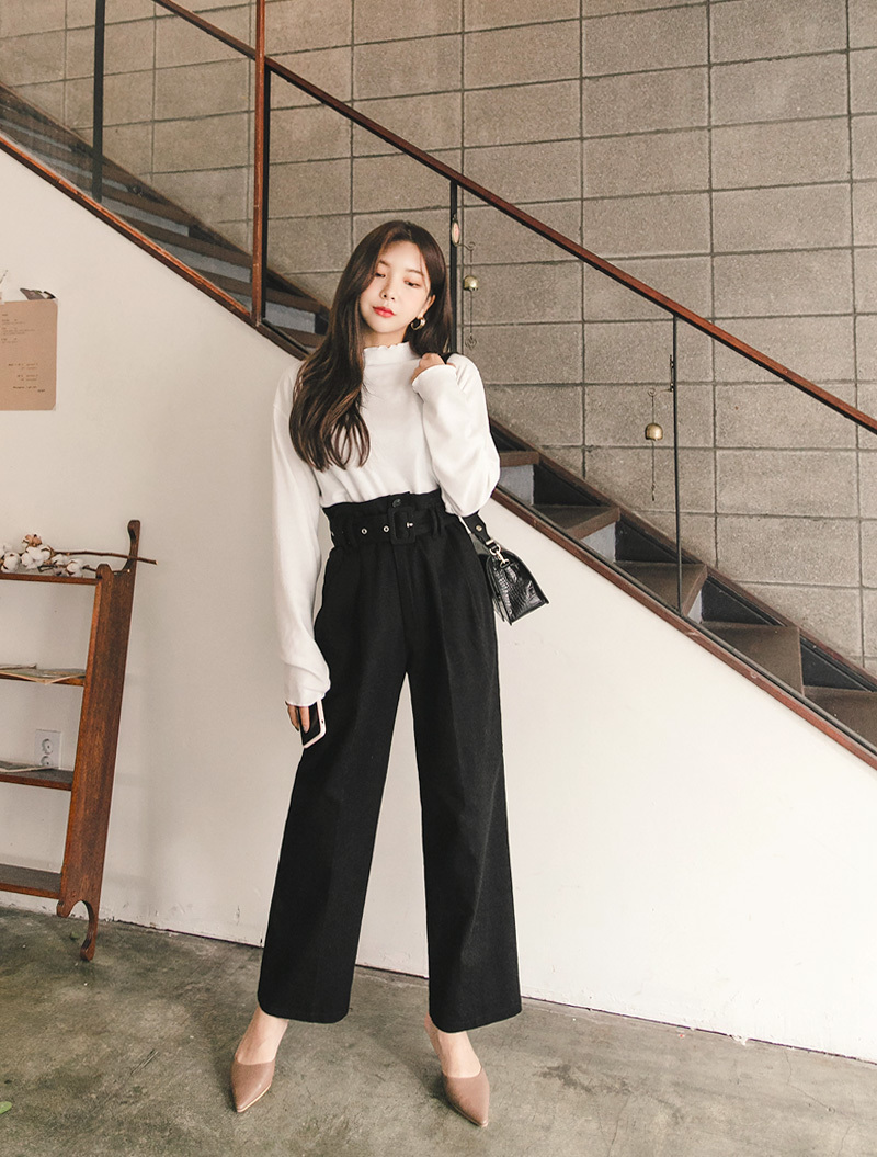 15. กางเกงแต่งเข็มขัดใส่กับเสื้อแขนยาวคอสูง