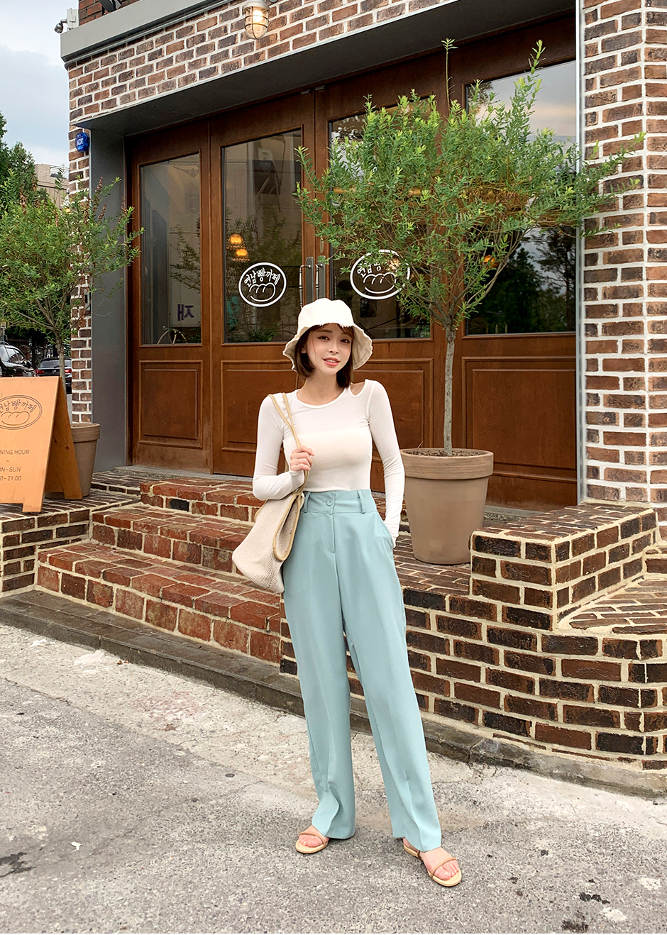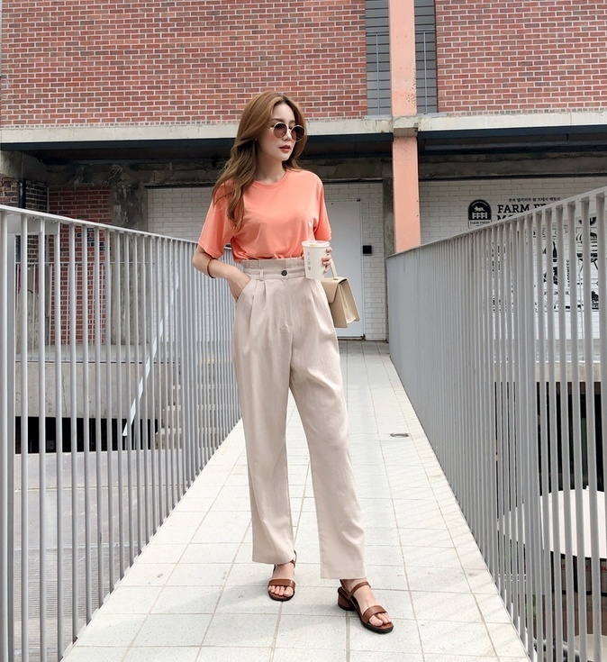 2. กางเกงสีอ่อนใส่กับเสื้อยืดเข้ารูปก็สวย