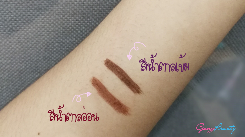 ลองเอามาเขียนที่แขน ดังภาพ ความรู้สึก : มันไม่ได้แย่เลย เม็ดสีแน่น สีสวย เขียนง่าย แต่ถ้าสาวๆคนไหนอยากได้แบบติดทั้งวันไม่แนะนำให้ใช้ตัวนี้เพราะระหว่างวันจะมีหลุดบ้างต้องมีเติม แต่ถือได้ว่าเป็นดินสอที่คุ้มค่าเกินราคามากๆ แนะนำให้ซื้อติดกระเป๋าไว้เลยค่ะ เป็นดินสอเขียนคิ้วที่เหมาะในเวลาฉุกเฉินที่สุด หาซื้อสะดวกและราคาถูก ปลื้มค่าาา ><