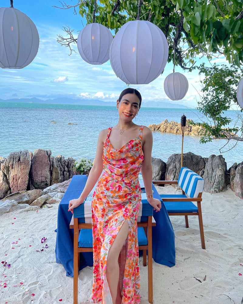 เดรสผ้าพริ้วลายดอกไม้ก็เข้ากับทะเลไม่เบา