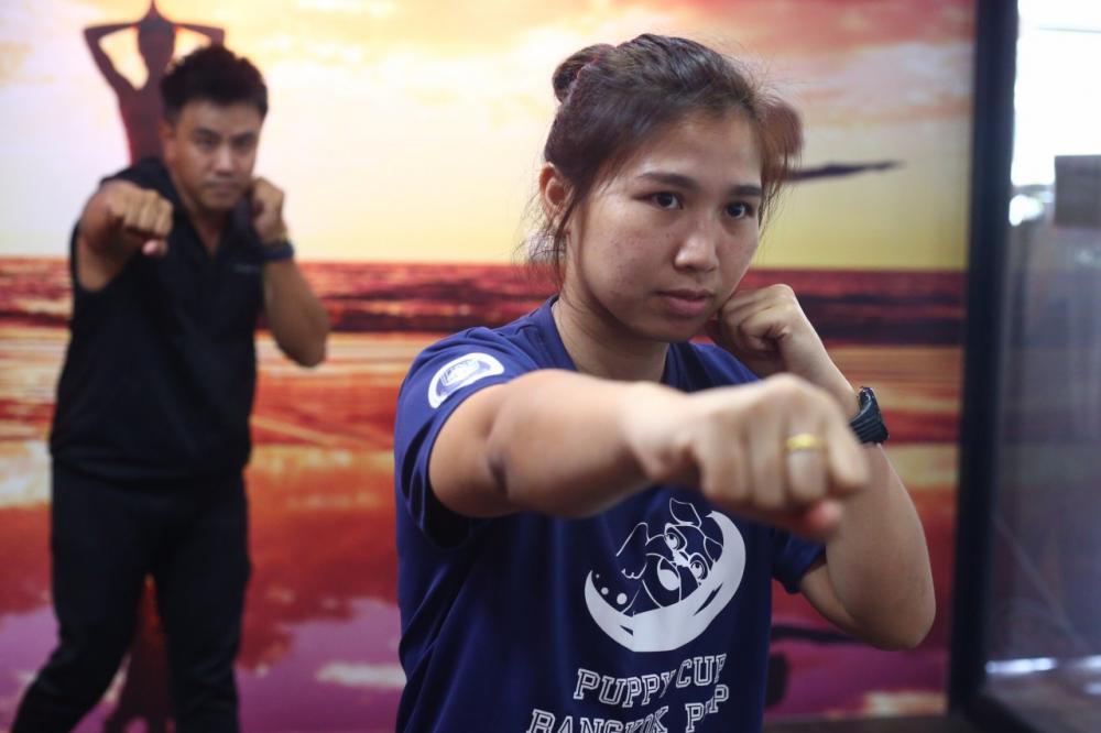 “หมัดอับเปอร์คัต” ชกที่บริเวณลำตัวหรือปลายคาง เปิดส้นเท้า งอเข่าและย่อตัวลงเล็กน้อย