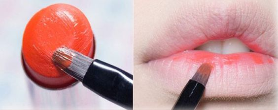 2. นำแปรงไปแตะลิปสีที่เราเลือกแล้วใช้แปรงแตะที่ริมฝีปากด้านในทั้งบนและล่าง