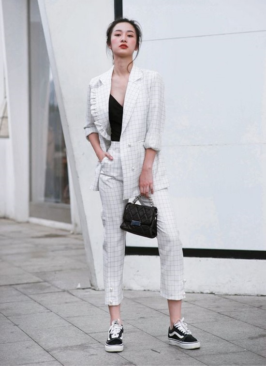 12.สูทลายตารางโทนสีขาวสวยเท่ปังสุด