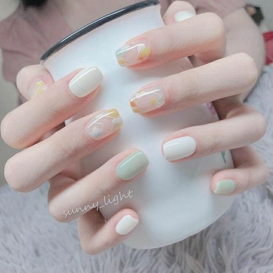 ใครชอบสไตล์หวานๆ ต้องลายน้เลยค่ะ กับชมพูพาสเทล และสีใสลายหินอ่อน