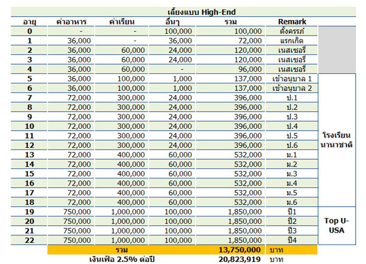 *** ฉะนั้นจะเห็นว่าผมคำนวณให้เฉพาะค่าใช้จ่ายที่จำเป็นจริงๆมาให้ แต่ในความเป็นจริงมันจะมีค่าใช้จ่ายอื่นๆอีกหลายรายการซึ่งพูดในนี้ก็คงไม่หมด ซึ่งวัตถุประสงค์หลักของผมก็เหมือนเดิม คืออยากให้คนไทยหันมาใส่ใจเรื่องการวางแผนการเงิน การวางแผนครอบครัว ซึ่งถือเป็นสถาบันที่สำคัญของคนไทย เด็กจะเติบโตมาเป็นอย่างไร สิ่งแวดล้อมในวัยเด็กเป็นสิ่งสำคัญครับ ***