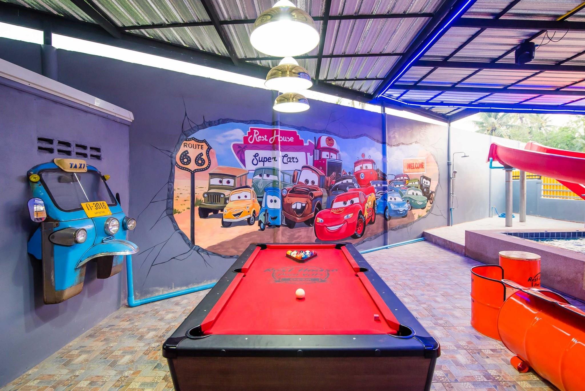 พูลวิลล่าชะอำรายละเอียด : บ้านพักพูลวิลล่าส่วนตัว , พักได้สูงสุด 18 ท่าน , 4 ห้องนอน 3 ห้องน้ำ 1 ห้องนั่งเล่น 1 ห้องครัวพร้อมอุปกรณ์ครบ , ธีม Paint บ้าน แก๊ง Cars , สระว่ายน้ำส่วนตัวระบบน้ำเกลือ , สไลเดอร์ 7 ม. + ห่วงยางแฟนซี , โต๊ะพลู Size มาตราฐาน , แอร์ทั้งหลัง , Free Wi-Fi , เตา BBQ พร้อมถ่านถ่านฟรี 1 ถุง , อุปกรณ์ครัวครบ พร้อมน้ำแข็งฟรี 1 ถัง , TV Digital 55 นิ้ว พร้อมเครื่องเสียง , คาราโอเกะ , ไฟเธคสุดมันส์ , เครื่องทำควัน 1 เครื่องใหญ่