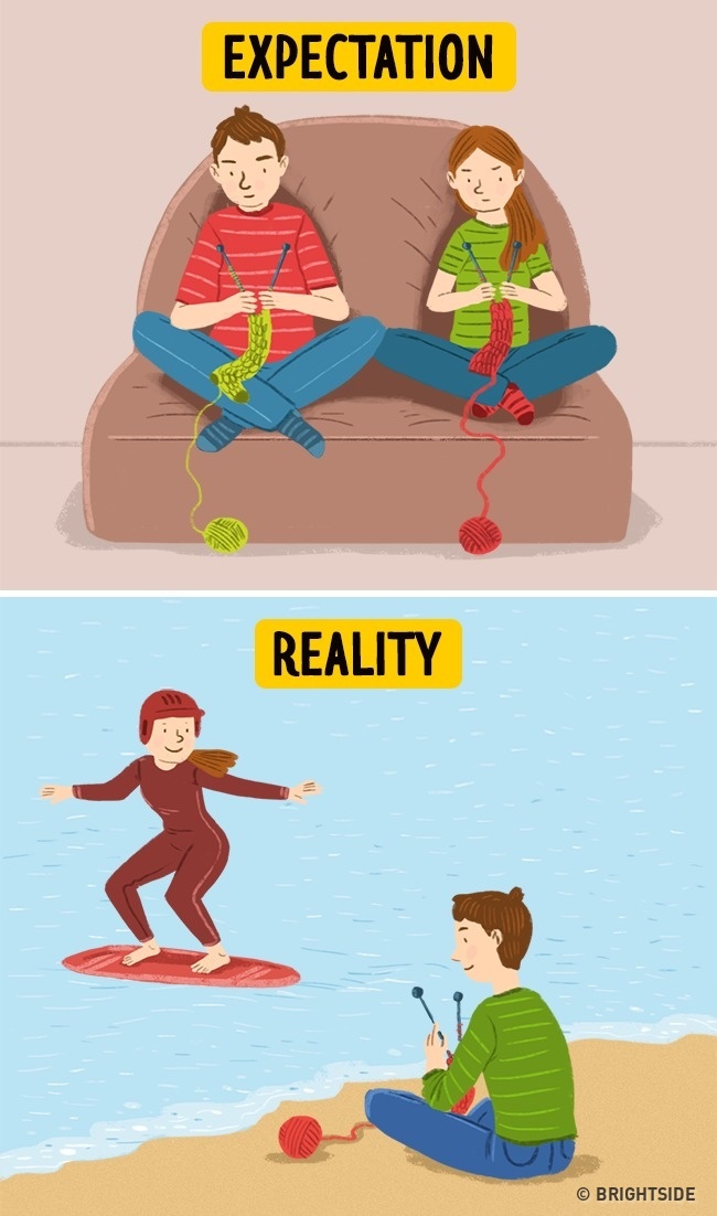 คนเราเกิดมา ล้านคน ล้านความคิด ฉะนั้นความชอบอะไรก็มักจะไม่ค่อยเหมือนกันเท่าไหร่หรอก อย่าไปคิดว่าคนนึงชอบกีฬาเอ็กซ์ตรีม อีกคนชอบที่จะนั่งถักไหมพรมเงียบๆ อาจจะทำให้ไม่มีเรื่องคุยกันแล้วก็ไม่มีความสุข จะบอกให้ว่าเวลาต่างคนต่างได้ทำอะไรในสิ่งที่ตัวเองชอบ นั่นแหละเป็นสเน่ห์ที่สะกดใจอีกฝ่ายไว้ได้อยู่หมัด!