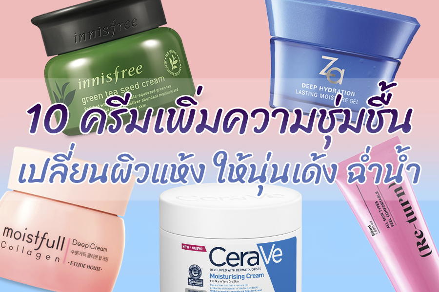 สำหรับคนที่มีปัญหาหน้าแห้ง หรือผิวมันแต่ขาดน้ำ หากช่วงไหนขาดการบำรุง คงจะประสบปัญหาผิวแห้งกร้าน เป็นขุย ลูบแล้วสาก หรือผิวไม่สดใสกันแน่ๆ เวลาแต่งหน้าทีเครื่องสำอางก็ไม่ติดผิว แถมยังตกร่อง และยิ่งทำให้รอยขุย แห้งลอก เห็นชัดขึ้นอีกด้วย แบบนี้ต้องรีบหาตัวช่วยด่วนกันแล้วค่ะ ดังนั้นวันนี้จะมาแนะนำ 10 ครีมเพิ่มความชุ่มชื้น ที่ช่วยแก้ปัญหาผิวแห้งกร้าน ให้ผิวหน้าของเรากลับมาสวยเด้ง อิ่มน้ำ ดูสุขภาพดีกันค่ะ เรามาดูกันดีกว่าว่าจะมีครีมเพิ่มความชุ่มชื้นเด็ดๆ ตัวไหนบ้าง