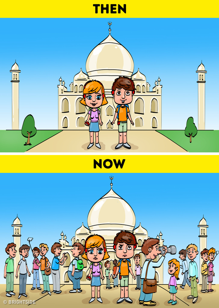 โลกหมนุรอบตัวเองในทุกวัน นั้นหมายความว่าในแต่ละวันมันต้องมีอะไรที่เปลี่ยนแปลง ของทุกอย่างมันต้องเปลี่ยนแปลงไปตามกาลเวลาเสมอ อย่างที่เราจะนำภาพการ์ตูนมาให้เราได้ดูว่าโลกมีการเปลี่ยนแปลงไปมากน้อยแค่ไหน