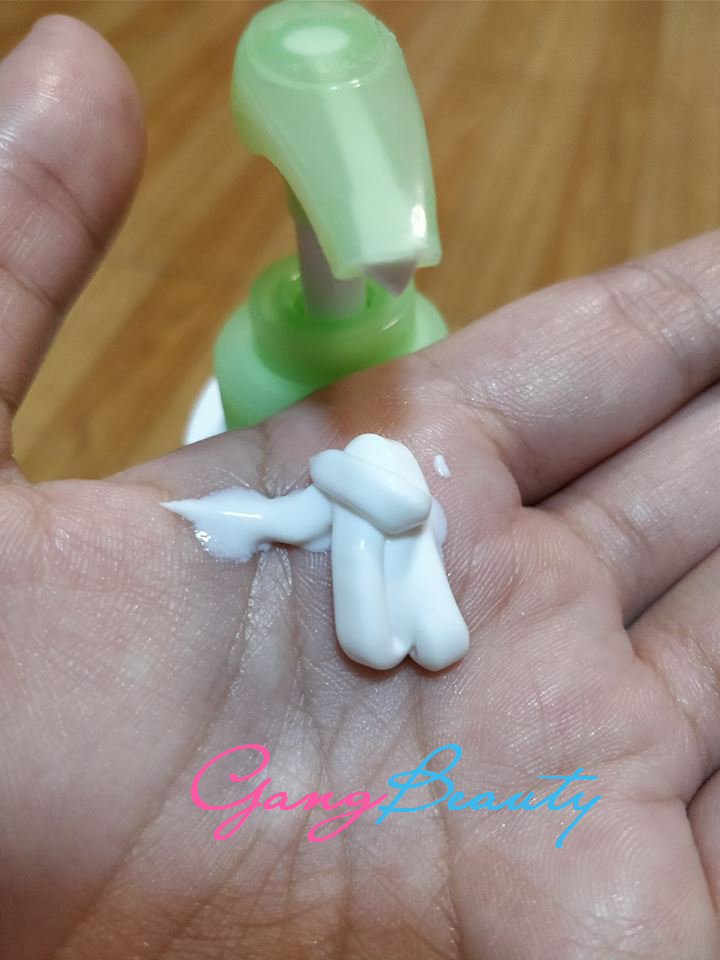 ขวดใหญ่เป็นหัวปั๊ม ใช้ง่าย ปั๊มออกมาจะเป็นเนื้อแบบนี้ เนื้อจะหนักกว่าโลชั่นทั่วไปนิดนึง แต่ทาแล้วซึมไวอยู่