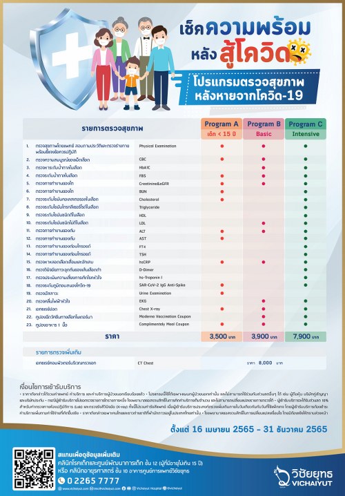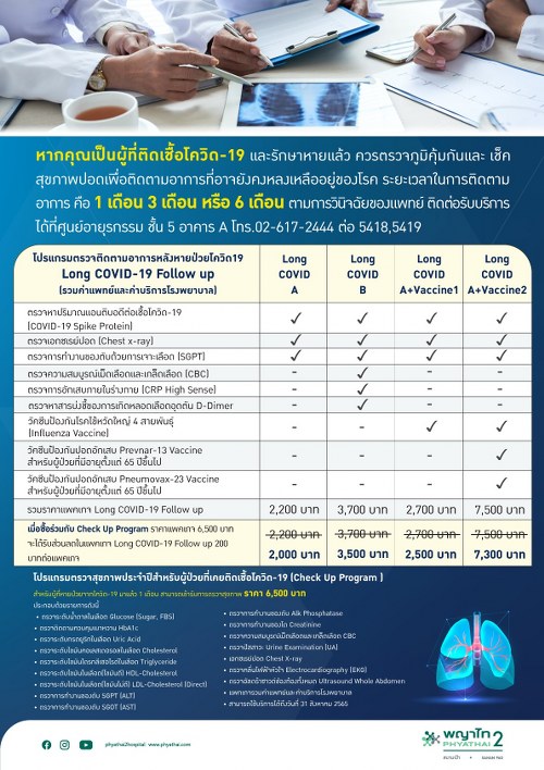 1. โปรแกรมตรวจสุขภาพหลังหายจากการติดเชื้อ Covid-19 (Long Covid Program A,B)