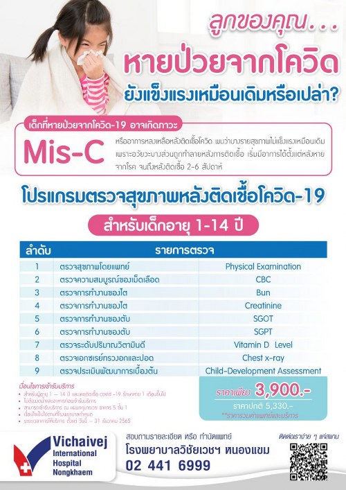 1. โปรแกรมตรวจสุขภาพหลังติดโควิด-19 สำหรับเด็กอายุ 1-14 ปี / 3,900 บาท