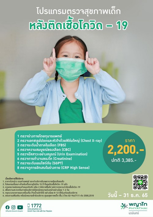 1. โปรแกรมตรวจสุขภาพเด็ก หลังติดเชื้อโควิด-19 / 2,200 บาท