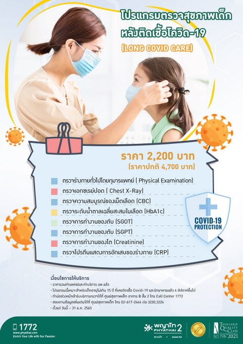 1. โปรแกรมตรวจสุขภาพเด็กหลังติดชื้อโควิด-19 / ราคา 2,200 บาท