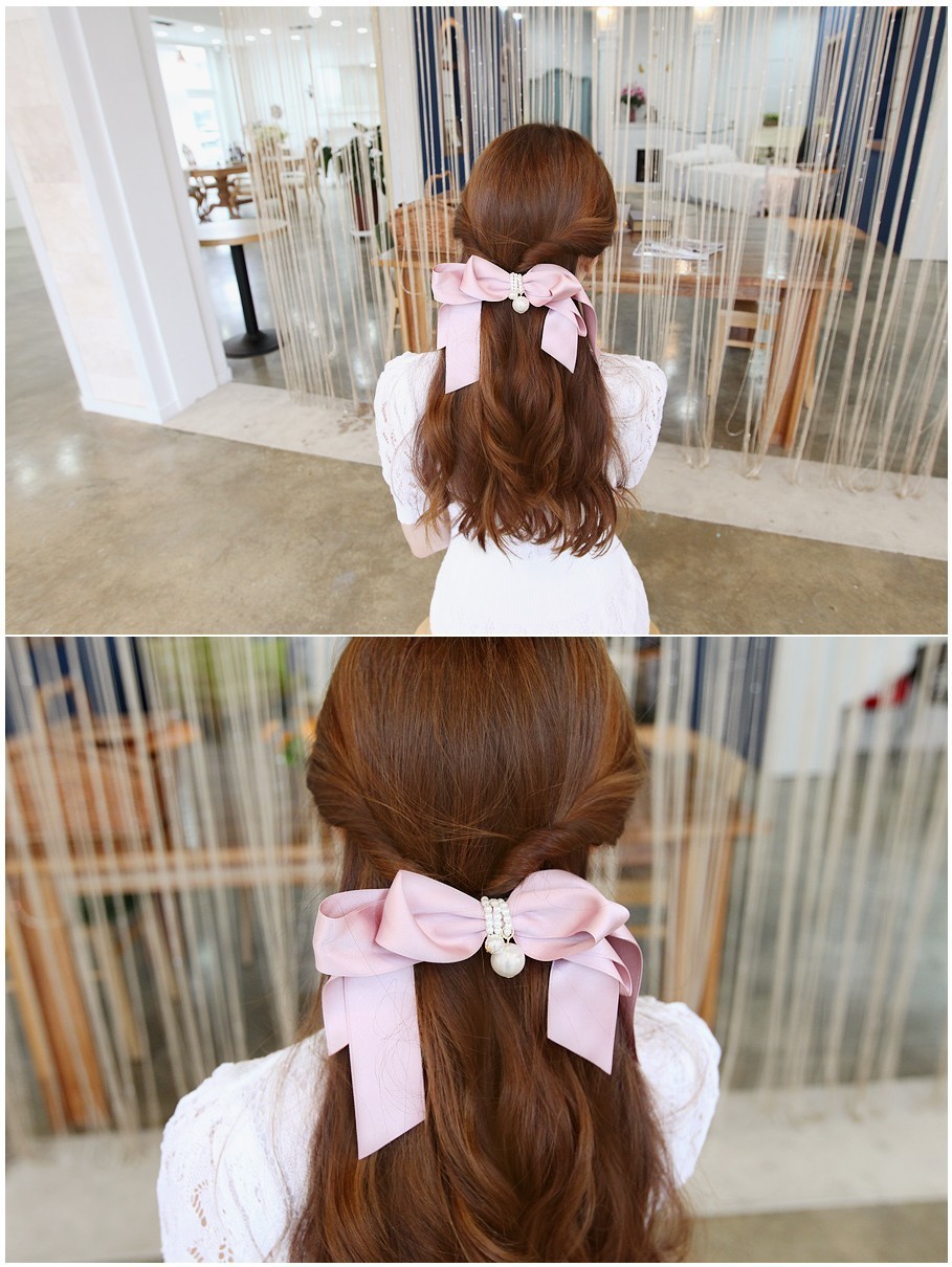 เริ่มกันด้วยไอเทมสีชมพูดีๆ สำหรับสาวๆ ผมยาวกันก่อนค่ะ ใครที่มีผมยาวนั้น ไม่ต้องทำอะไรให้ยุ่งยากวุ่นวายค่ะ แค่เกล้าผมตามปกติแล้วหาโบว์สีชมพูมาติดผมก็ช่วยเพิ่มความน่ารัก ทำให้ได้ลุคสวยหวานสไตล์คุณหนูแล้วล่ะค่ะ โบว์สีชมพูกะปิแบบอลังการ