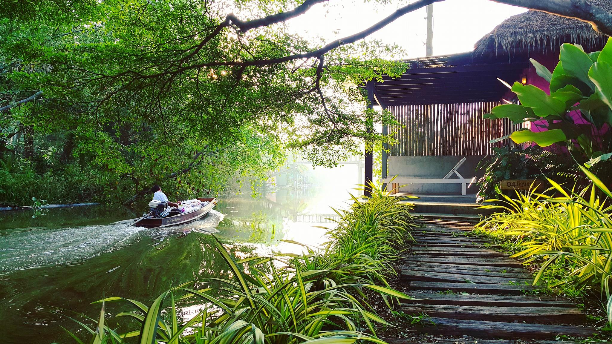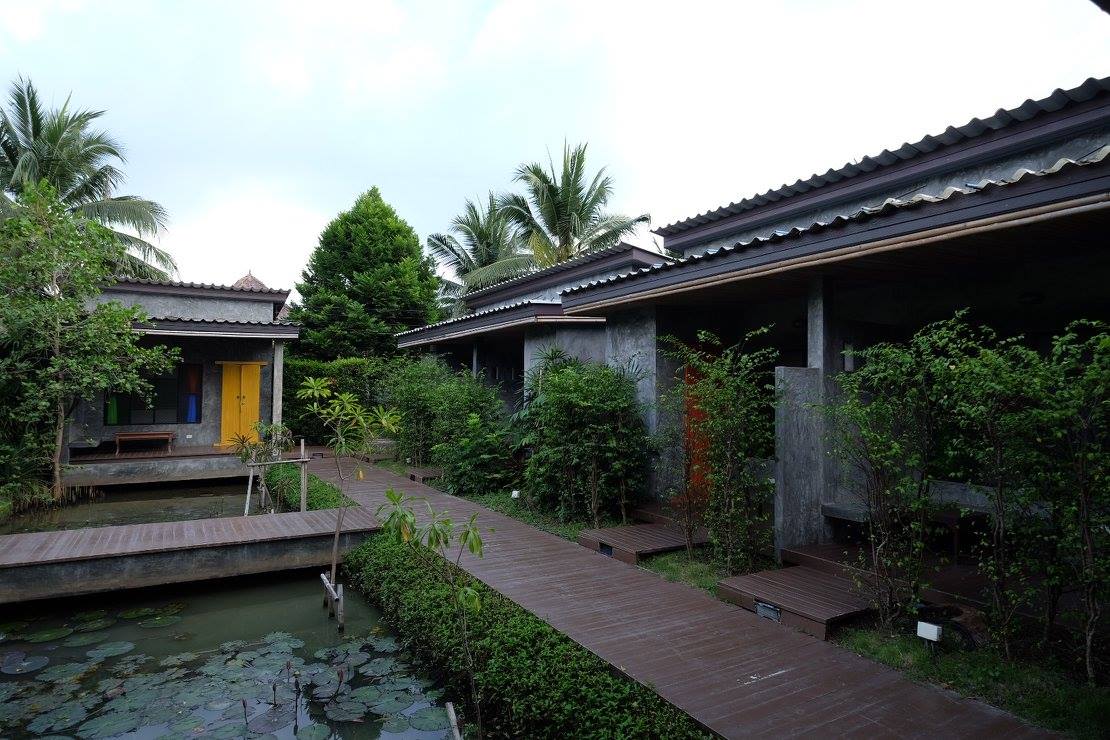 ที่พักอัมพวาริมน้ำ รีสอร์ทสไตล์บาหลีประยุกต์ ผสมผสานระหว่างที่พักกับธรรมชาติริมน้ำได้อย่างลงตัว และสอดคล้องความเป็นบ้านสวน เหมาะสำหรับการพักผ่อน เงียบ สงบ สิ่งอำนวยความสะดวกครบครัน
