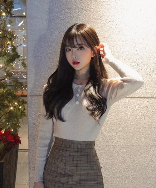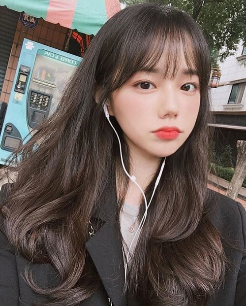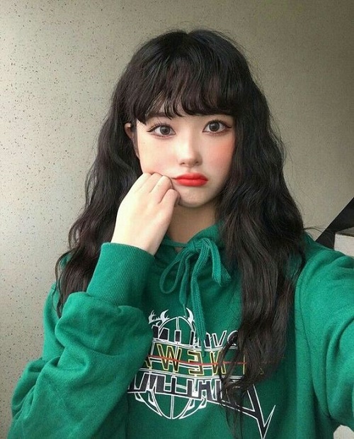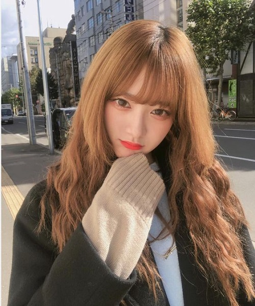 9. ปลายผมม้วนลอนเบา เข้ากับหน้าม้ามาก