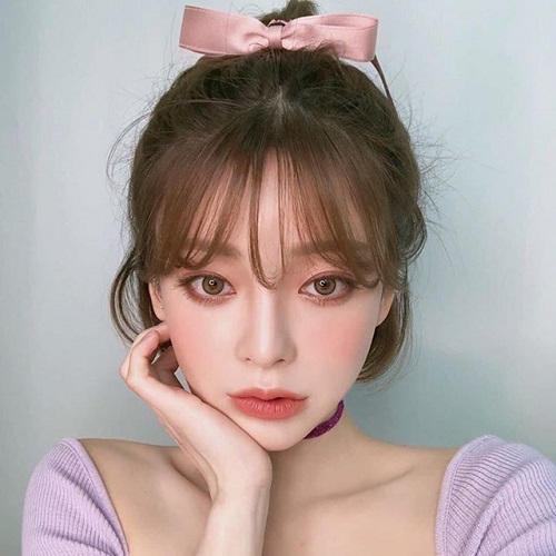 16. ผมสีน้ำตาล กับทรงผมหน้าม้า ทำคู่กันแล้วหน้าสว่าง ดูเด็ก