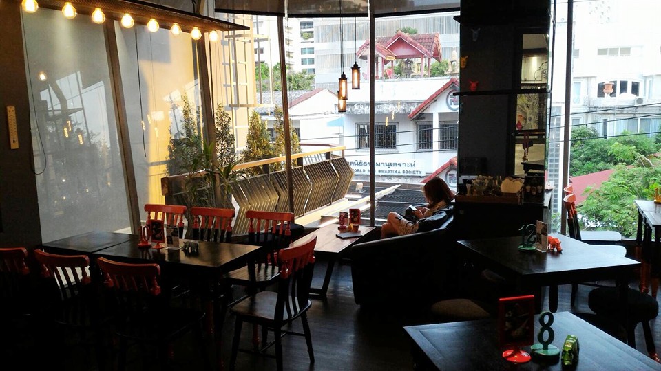 ร้านนี้อยู่แถว BTS สถานีอโศกเช่นกัน ตกแต่งออกสไตล์ลอฟฟ์หน่อยๆ แต่ถ้าได้เข้าไปนั่งแล้วรับรองว่าอยากเอนหลังหลับแน่นอน เป็นร้านที่เน้นกาแฟและขนมซะส่วนใหญ่ หากใครไปก็คงต้องแนะนำให้ลองจานนี้เลย แพนเค้กกล้วยหอม เครื่องดื่มพวกกาแฟร้อน มันก็จะน่ารักๆ แบบนี้ล่ะ