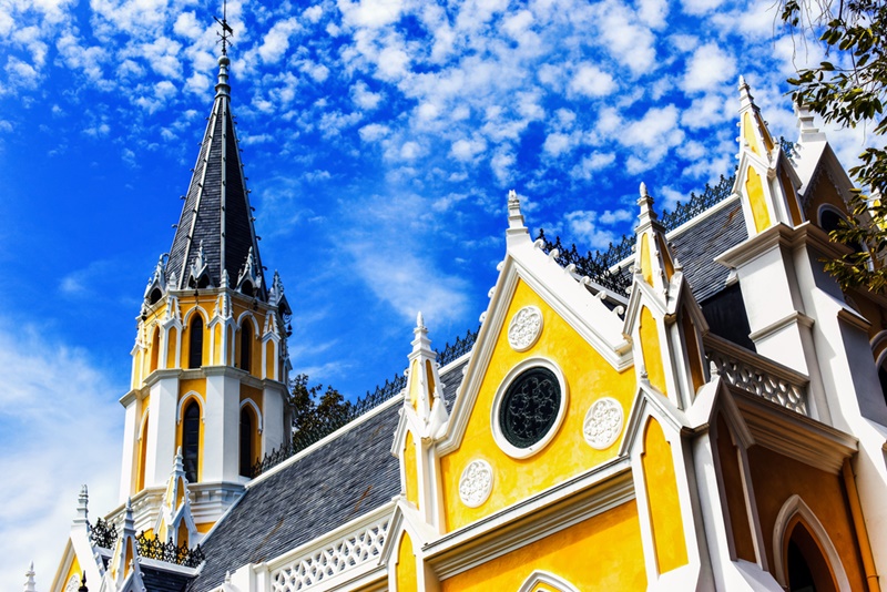 “วัดนิเวศธรรมประวัติ” ถูกสร้างขึ้นในรัชสมัยของพระบาทสมเด็จพระจุลจอมเกล้าเจ้าอยู่หัว รัชกาลที่ 5 เป็นวัดไทยที่ออกแบบคล้ายการสร้างโบสถ์คาทอลิกของฝรั่ง ภายในพระอารามนั้นถูกประดับตกแต่งด้วยกระจกสีต่างๆ สีสันสวยงาม ไฮไลท์อีกอย่างของวัดนิเวศธรรมประวัติก็คือเป็นวัดที่อยู่บนเกาะกลางแม่น้ำเจ้าพระยา โดยเราจะต้องนั่งกระเช้าข้ามไปเพื่อชื่นชมความสวยงาม
