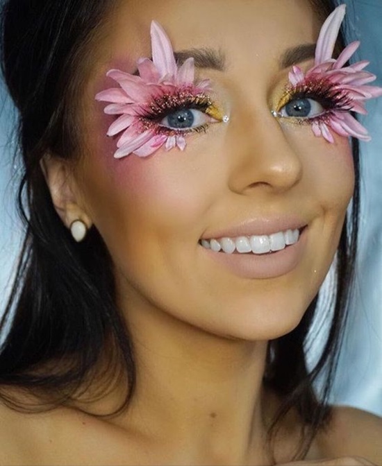 4.นำดอกไม้เล็กๆมาตกแต่งเปลือกตาแทนอายแชโดว์ได้ตาสวยแสนเก๋