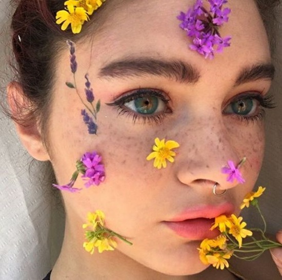 11.ดอกไม้จิ๋วนำมาตกแต่งบนใบหน้าเบาเบาไม่ดูเยอะ