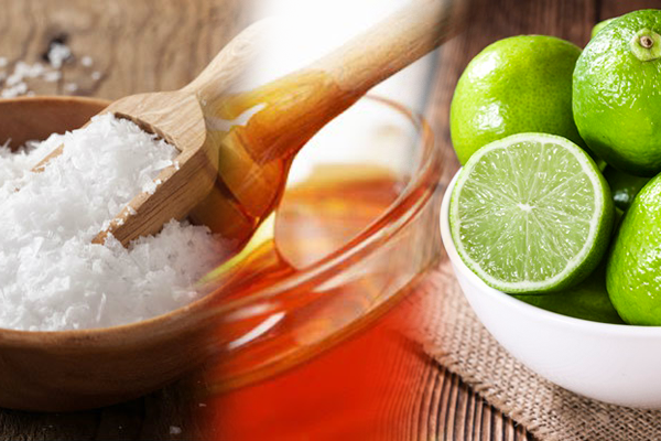 เกลือเม็ดละเอียด น้ำผึ้ง และมะนาว