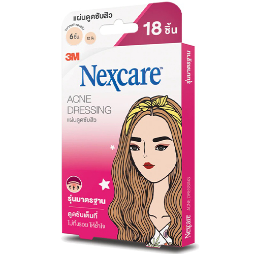 เริ่มกันที่ 3M Nexcare แผ่นแปะสิวในเซเว่นที่หาซื้อง่ายใน 7-11 และร้านขายยาทั่วไป โดยตัวนี้เป็นรุ่นมาตรฐาน ที่ช่วยดูดซับของเหลวใต้ผิวหนังอย่างหนองออกมา สิวอักเสบจึงยุบเร็ว แห้งไวยิ่งขึ้น เพราะแผ่นแปะผลิตจากสารไฮโดรคอลลอยล์ที่ดูดซับของเหลวใต้ผิวที่เป็นสิวได้เป็นอย่างดี แถมยังช่วยปกป้องสิวจากสิ่งสกปรกและแบคทีเรียอีกด้วย ที่สำคัญแผ่นแปะมีมากถึง 18 ชิ้น เรียกได้ว่าคุ้มสุดๆ