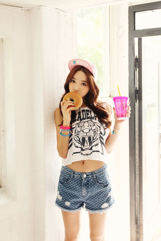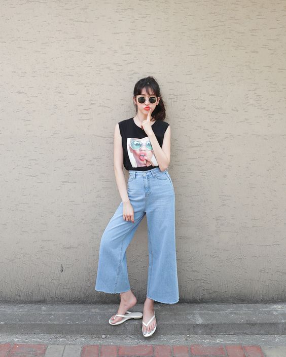 ซึ่งก็คือการนำเสื้อยืดตัวเก่าที่สาวๆ ไม่ค่อยได้ใส่แล้ว หยิบมาตัดช่วงแขนให้กลายเป็นเสื้อกล้ามแขนกว้างซะเลย และบวกกับการมิกซ์แอนด์แมตช์กางเกงท่อนล่าง