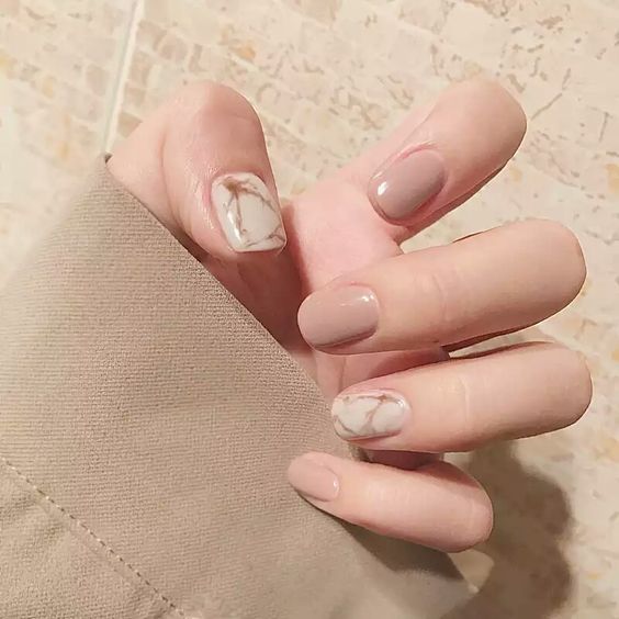เพ้นท์เล็บโทนสีครีมพาสเทลสลับกับลายหินอ่อน