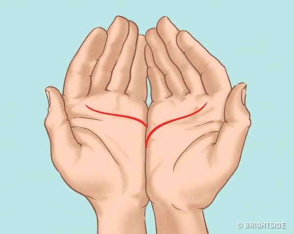 คนที่มีเส้นลายมือลักษณะนี้เป็นคนมุ่งมั่น ทะเยอทะยาน อดทนเก่ง รักอิสระ ชอบความรักที่ตื่นเต้นหวือหวา มีโอกาสได้เจอเนื้อคู่ที่อายุน้อยกว่า หน้าตาดี หรือไม่ก็ได้เนื้อคู่เป็นชาวต่างชาติ ต่างบ้านต่างเมือง เพราะด้วยความที่เป็นคนไม่ค่อยชอบอยู่นิ่ง และชอบอะไรที่แปลกใหม่