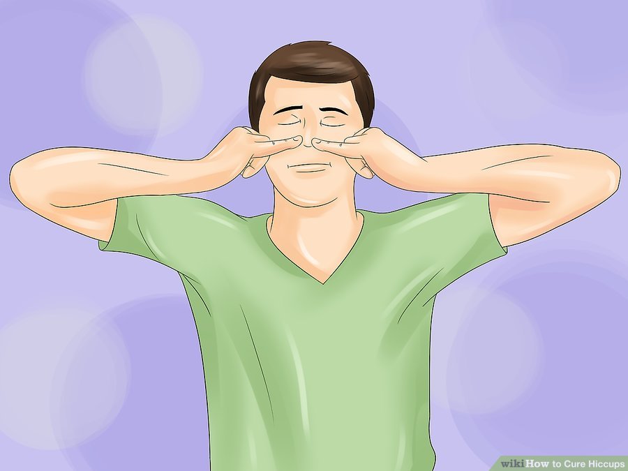 ในขณะที่คุณรู้สึกสะอึกนั้น ให้ใช้มือปิดจมูกเอาไว้ และให้ใช้วิธีหายใจทางปาก วิธีนี้จะช่วยสยบอาการสะอึกได้ เนื่องจากร่างกายได้รับก๊าซคาร์บอนไดออกไซด์เข้าไปมากขึ้น
