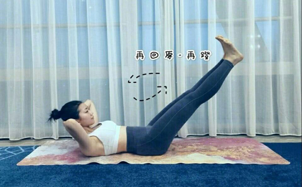 – จากนั้นยกขาทั้งสองข้างที่เหยียดตรงยกขึ้นมาทำมุม 90 องศา ค้างไว้ประมาณ 3 วินาที แล้วค่อยๆเหยียดขาลงท่าเดิม ระวังอย่าให้เท้าโดนพื้นนะคะ ทำ 1 เซต เซตละ 15 ครั้ง