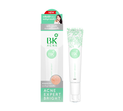 BK Acne Expert Bright ตัวนี้เป็นครีมบำรุงผิวหน้าเนื้อเซรั่มจากแบรนด์ BK Acne ที่มีส่วนผสมของสารสกัดไวท์เทนนิ่งที่ได้รับรางวัลระดับโลก ช่วยบำรุงผิวหน้าอย่างมีประสิทธิภาพ ช่วยลดเลือนฝ้า กระ จุดด่างดำ ริ้วรอย รอยดำ รอยแดงที่เกิดจากสิวให้จางลง ให้ผิวกระจ่างใสขึ้นอย่างเป็นธรรมชาติ และช่วยปรนนิบัติผิวให้นุ่มชุ่มชื้น เปล่งปลั่ง ไม่ทำให้เกิดสิวใหม่เพิ่ม อ่อนโยนต่อผิวมากๆ ผิวบอบบางและแพ้ง่ายก็สามารถใช้ได้ ไม่มีส่วนผสมจากแอลกอฮอล์ น้ำหอม และพาราเบนค่ะ