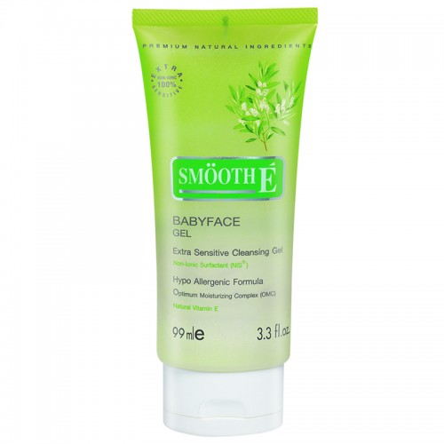 Smooth e babyface gel เจลล้างหน้าตัวเด็ดของ Smooth e เป็นเจลล้างหน้าสูตรอ่อนโยน ไม่มีฟอง ไม่มีสารที่ก่อให้เกิดอาการแพ้ มีส่วนผสมของ Optimum Moisturizing Complex ช่วยรักษาความชุ่มชื้นของผิว Vitamin E ช่วยต่อต้านอนุมูลอิสระ สาเหตุของริ้วรอย และ Rose Oil Extract, Sea Weed Extract ช่วยให้ผิวอ่อนนุ่ม เป็นโฟมล้างหน้าที่เหมาะกับคนผิวแห้ง แพ้ง่าย และคนเป็นสิวผด