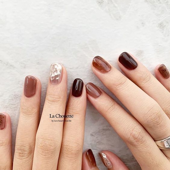 หรือจะลองทาเล็บด้วยสีน้ำตาลเข้ม สลับกับเพ้นท์เล็บลายหินอ่อนในโทนเอิร์ธโทน ก็สุดชิคในสายมินิมอลสุดๆ ไปเลย