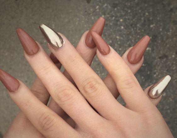 ส่วนลุคนี้ก็มาแบบเรียบง่ายสายแซ่บ แค่ทาเล็บด้วยสีน้ำตาลเอิร์ธโทน สลับกับทาเล็บสีเทาเมทัลลิค ก็แซ่บสุดสายมินิมอลไปเลย
