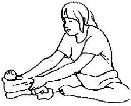 ใช้ผ้าหนาๆสอดไปใต้ฝ่าเท้าในท่าที่นั่งยืดขา ค่อยๆดึงผ้าจนกระทั่งรู้สึกตึงๆฝ่าเท้า