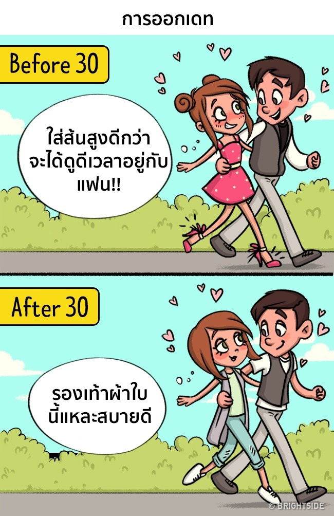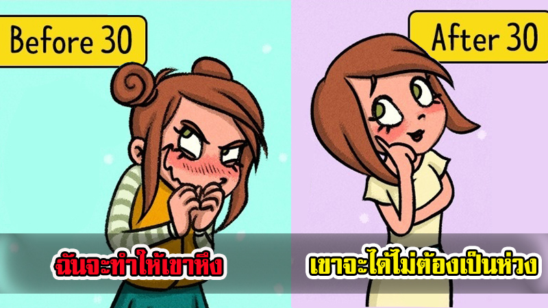 อย่างภาพการ์ตูนที่เราเอามาให้ได้ดูกันนี้ เป็นการเปรียบเทียบให้เห็นความต้องการที่เปลี่ยนไป ก่อนอายุ 30 และ หลังอายุ 30 จะตรงขนาดไหนเราไปดูกันเลย