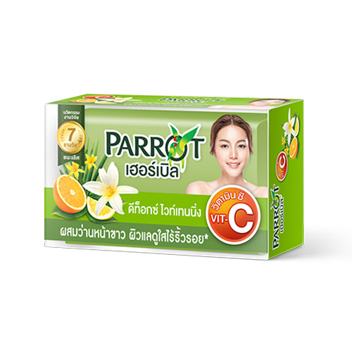 Parrot สูตรดีท็อกซ์ ไวท์เทนนิ่ง ตัวนี้เป็นสบู่ที่มีส่วนผสมของสารสกัดจากว่านหน้าขาว ช่วยป้องกันกระบวการสร้างเม็ดสี ต่อต้านอนุมูลอิสระ และช่วยกระตุ้นการสร้างคอลลาเจนให้ผิวขาวกระจ่างใสขึ้นภายใน 7 วัน และมีส่วนผสมของซิตรัส, บล็อคโคลี่ และว่านหางจระเข้ ช่วยให้ริวรอยต่างๆ จางลง รูขุมขนกระชับขึ้น และมีสารสกัดออร์แกนิคของรากชะเอมเทศที่ช่วยให้ผิวขาวขึ้นอย่างอ่อนโยนด้วยค่ะ