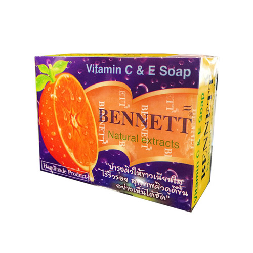 เรื่องผิวขาวจะขาดสบู่ Bennett Vitamin C & E Soap ไปไม่ได้เลยค่ะ ตัวนี้เป็นสบู่สูตรวิตามินซีและอี ที่มีส่วนผสมของวิตามินซีและอี กลีเซอรีน น้ำมันเปลือกส้ม และน้ำมันสมุนไพร ช่วยให้ผิวขาวกระจ่างใสขึ้นหลังจากใช้ และช่วยให้ผิวเนียนนุ่ม เรียบเนียนน่าสัมผัส พร้อมกับช่วยลดแลป้องกันการเกิดสิว ฝ้า กระ และช่วยระงับกลิ่นตัวด้วยนะคะ