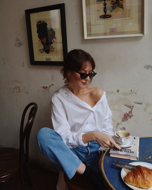 ตอนเช้าไปทำงานก็ต้องเรียบร้อยอยู่สักหน่อย งั้นแนะนำให้หยิบเสื้อเชิ้ตสีพื้นมาใส่เลยค่ะ ได้ลุคที่ดูดี สามารถไปพบปะลูกค้าได้ไม่มีทางน่าเกลียด แล้วพอตกเย็นจะไปสังสรรค์ต่อค่อยปลดกระดุกออกสองเม็ด แล้วเเหวกให้เห็นบราลูกไม้ด้านในรับรองว่าเเซ่บลืม