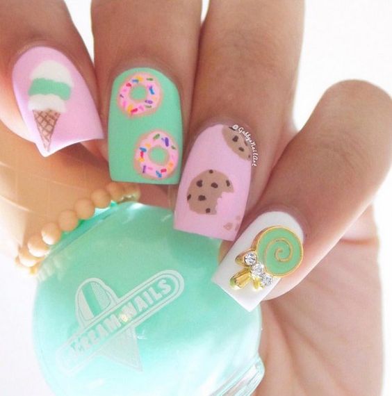 เล็บสวยแบบสายกิน กับลายเพ้นท์เล็บน่ารักๆ รูปขนมหวานน่าทาน