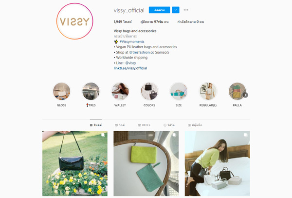 @vissy.official เป็นร้านกระเป๋าสุดชิค มีดีไซน์เรียบหรู แมทช์กับเสื้อผ้าได้หลายลุค ไม่ว่าจะไปเที่ยวหรือไปทำงานก็ตอบโจทย์ทุกสถานการณ์ เป็นกระเป๋างานลายหนังเก๋ๆ นอกจากนั้นยังมีกระเป๋าแบบไซส์จิ๋วขายด้วยนะคะ
