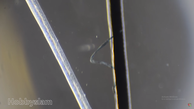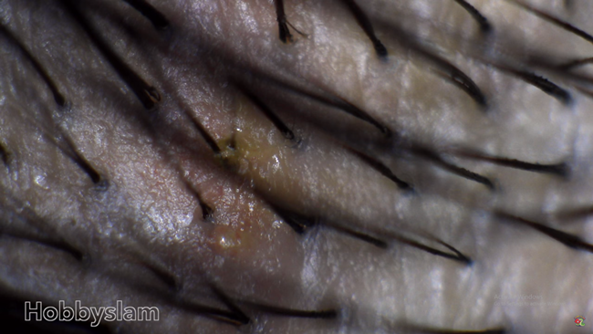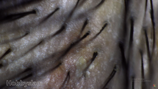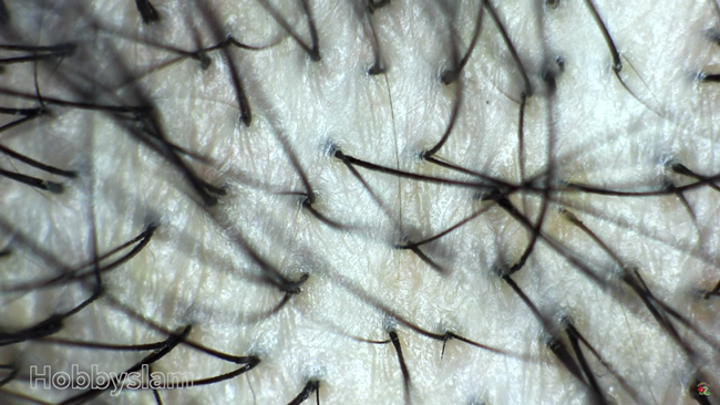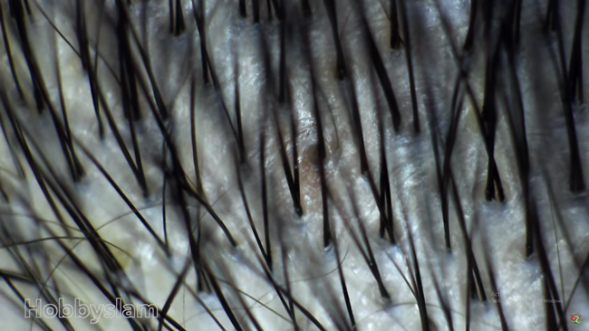 จะเห็นว่าเส้นผมน่ะแทงทะลุหนังหัวขึ้นมาแบบนี้เลย