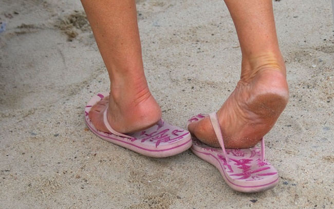 เชื่อหรือไม่ว่าคนที่สวมใส่รองเท้าแตะบ่อยๆ จะทำให้เรากลายเป็นคนเดินหลังโก่งไม่รู้ตัว ซึ่งในระยะยาวนั้นก็อาจมีผลต่อกระดูกสันหลัง สะโพกและเข่า ดังนั้นถ้าใครรู้ตัวว่าตัวเองเป็นคนเท้าแบน ให้หลีกเลี่ยงการสวมใส่รองเท้าแตะดีกว่า สมัยนี้มีรองเท้าแตะมากมายที่ทำสายรัดข้อเท้าให้แน่นขึ้นแล้ว จะลองหันมาใส่แบบนี้ดูก็ได้นะ