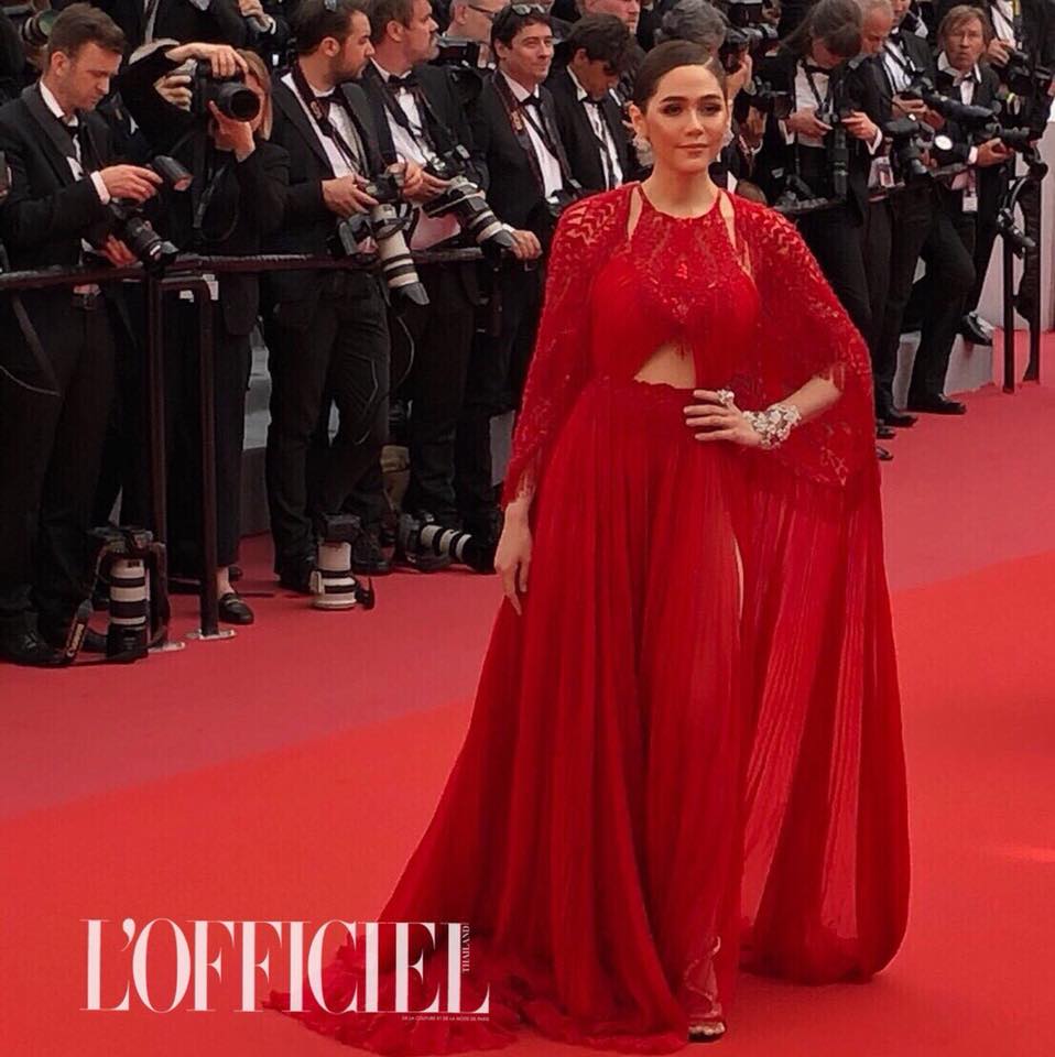 และในวันแรกกับชุดที่สาวชมใส่ก็ทำให้กลายเป็นนางพญา ในชดสีแดงเพลิงกันเลยทีเดียว ผ่าเว้าด้านหน้า ผยให้เห็นช่วงเรียวขาจาก Zuhair Murad Couture คอลเลกชั่นฤดูร้อน 2018 ที่คงความโดดเด่นด้วยดีเทลอัดแน่นทั้งงานปักประดับประดาเลื่อม และพู่คริสตัล พร้อมเครื่องเพชร ไม่ว่าจะเป็นต่างหู, กำไลข้อมือรูปดอกไม้ และแหวนเพชรทรงดอกไม้ประดับด้วยมุก จาก “Chopard Unveils 2014 Red Carpet Collection” และรองเท้าจากแบรนด์ “จูเซปเป ซานอตติ” (Giuseppe Zanotti) รุ่น “สเน็คฮีลส์” (Snake Heels) ที่สื่อทั่วโลกต่างจับจ้อง พร้อมรัวชัตเตอร์ ให้กับคุณแม่ชมพู่ ที่ไม่ทำให้ผิดหวังจริงๆ วันนี้ gangbeauty เลยนำคอลเลกชั่นนี้มาฝากให้ติดตามกันค่ะ