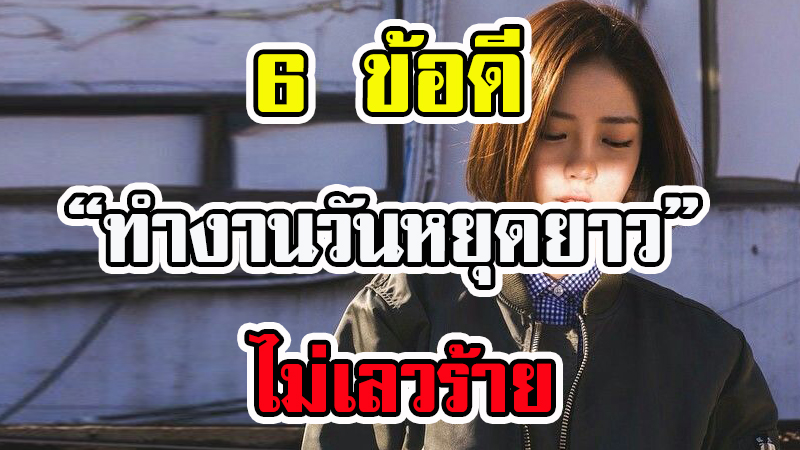 เนื่องจากเป็นวันทำงานที่บรรยากาศสบายๆ แถมงานไม่ได้ยุ่งมากมายเท่าไหร่นัก ไม่จำเป็นต้องรีบปั่นงานส่งใคร เพราะฉะนั้นเวลาพักกลางวันของคุณหลังทานข้าวเสร็จอาจจะนั่งชิลร้านคาเฟ่ชิคๆ ซัก 10-20 นาที เดินช้อปปิ้งตลาดนัดแถวย่านที่ทำงานซักหน่อย ขึ้นออฟฟิศเลทนิดๆ เอาแบบไม่ให้น่าเกลียดเป็นชั่วโมง หรือ ทำงานระหว่างวันอาจจะพักเบรกบ่อยๆ หน่อยก็ได้ เชื่อว่าใครหลายคนที่ประสบชะตากรรมทำงานวันหยุดยาว ต่างก็คิดแบบนี้กันทั้งนั้น