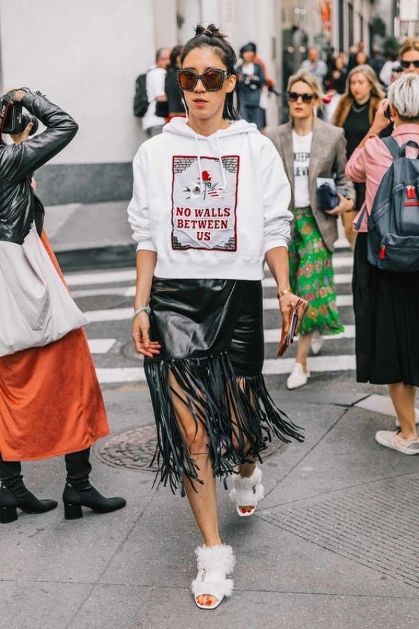 11. ฮู้ดดี้แบบครอปกับกระโปรงหนังก็เอาอยู่